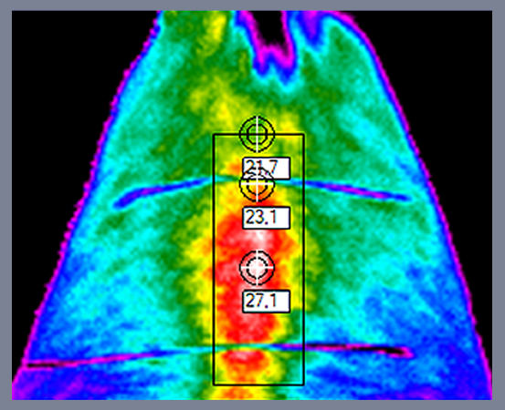 ist und an der hinteren Brustwirbelsäule ein asymmetrisches Wärmemuster